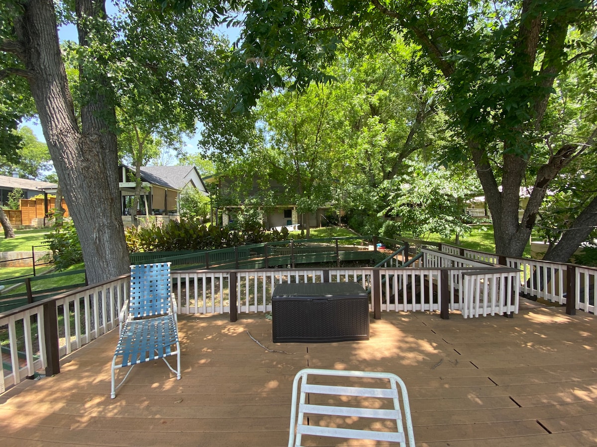 Up to 12 of your friends and family will enjoy a relaxing visit on the shores of Lake LBJ in our lake house, the adjacent garage apartment and the spacious decks. Direct access to the water on the constant level lake and scenic views of the lake await, one hour from many Austin locations.