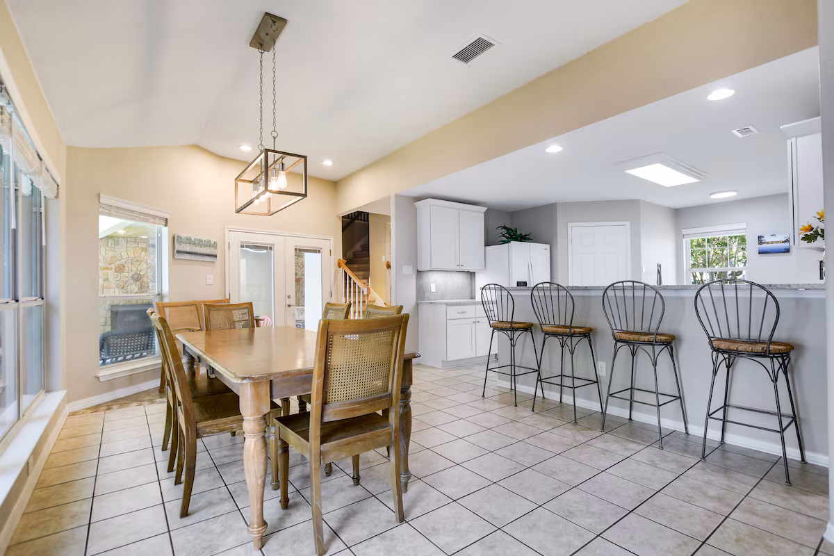 Come relax and enjoy beautiful Bella Casa Sal Lago, a Lake LBJ waterfront 4BR/3.5BA home located on 100′ of open lake front. This clean and inviting home is situated along 100 feet of open water with fantastic sunset views and is ideal for multiple families to spend time together at the lake.