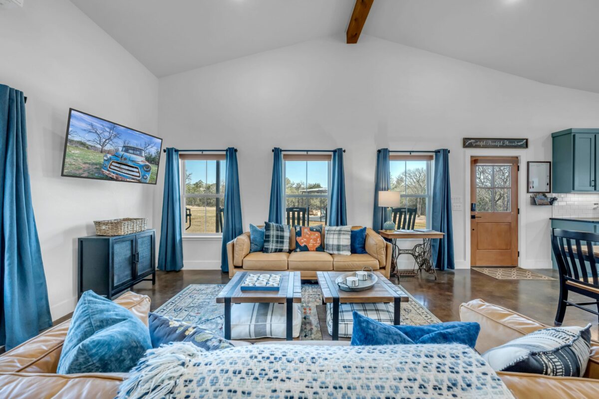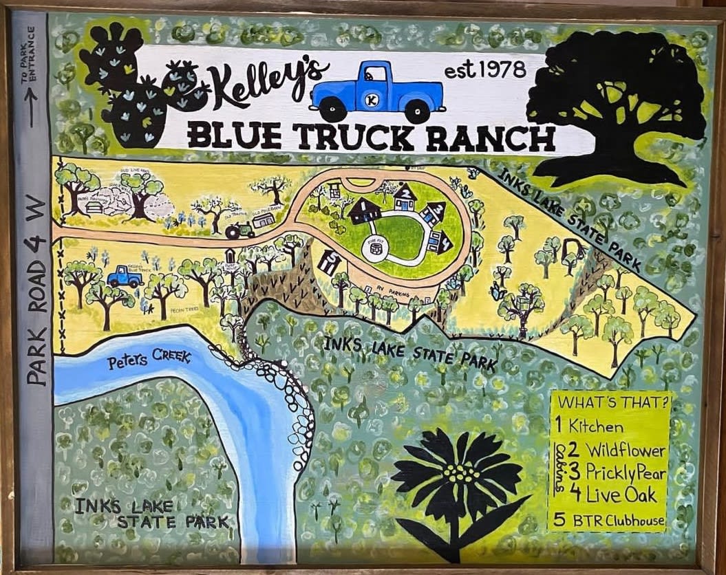 Welcome to Blue Truck Ranch! This property was purchased in 1978 by Betty & ET Kelley and is surrounded by Inks Lake State Park. This kids recently converted the property into their family ranch. This unique and very special vacation spot includes three cabins, separate gathering building that houses the kitchen, dining area, and living space. They wanted each of their kids and grandkids to have private sleeping quarters but an indoor area where everyone could gather!