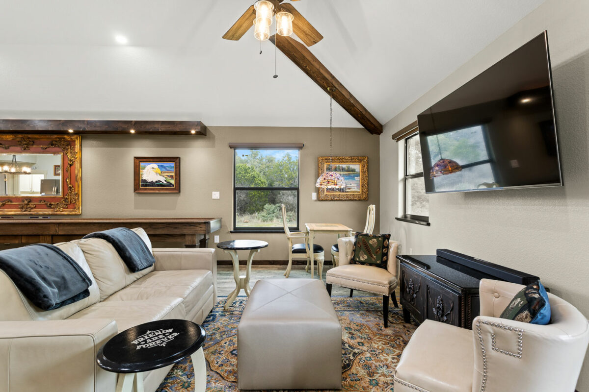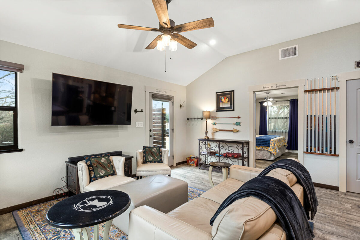 Welcome to Dragonfly Cabin! This cozy retreat is just three miles from Inks Lake State Park. Enjoy three KING beds, a hot tub, and fun games like pool and shuffleboard! Relax in hammocks or around the fire pit. Perfect for families and friends, we accommodate up to six guests. Explore nearby lakes, rent kayaks, or visit local wineries and eateries. Our Guide Book has all the best spots! Book your stay today and create unforgettable memories in this lovely, peaceful setting! NOT A PARTY HOUSE!