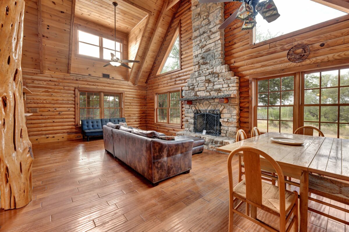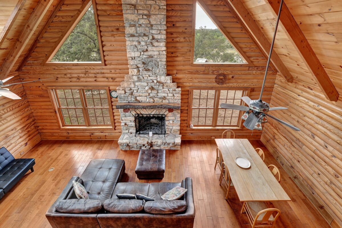 This 25 acre ranch is the perfect country getaway! IT sits right next to popular Perisso’s Vineyard out in the beautiful Burnet county. This two-story log cabin sleeps 8 guests and has a large open concept floor plan! There are onsite trails so jump on an ATV or horse and go explore! This home is located close to Inks Lake, Spider Mountain and Longhorn Caverns. It’s the perfect getaway for the adventurous family or a group looking to head to the wineries!