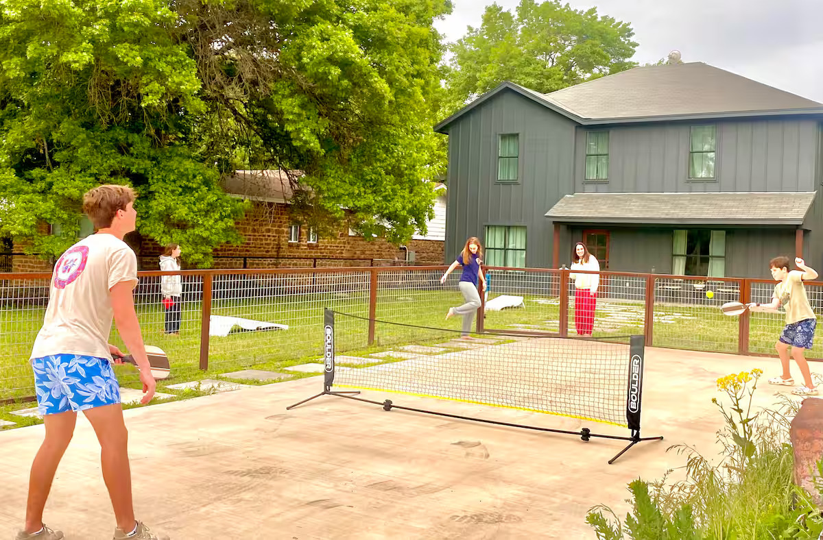Fenced in yard with child proof gates.