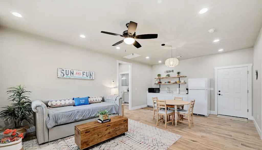 3 bed, 3 bath house with accompanying home (2/2) across the street. Waterfront property on the upper arm of the Colorado River.