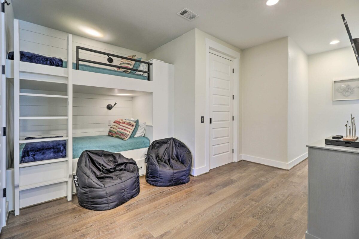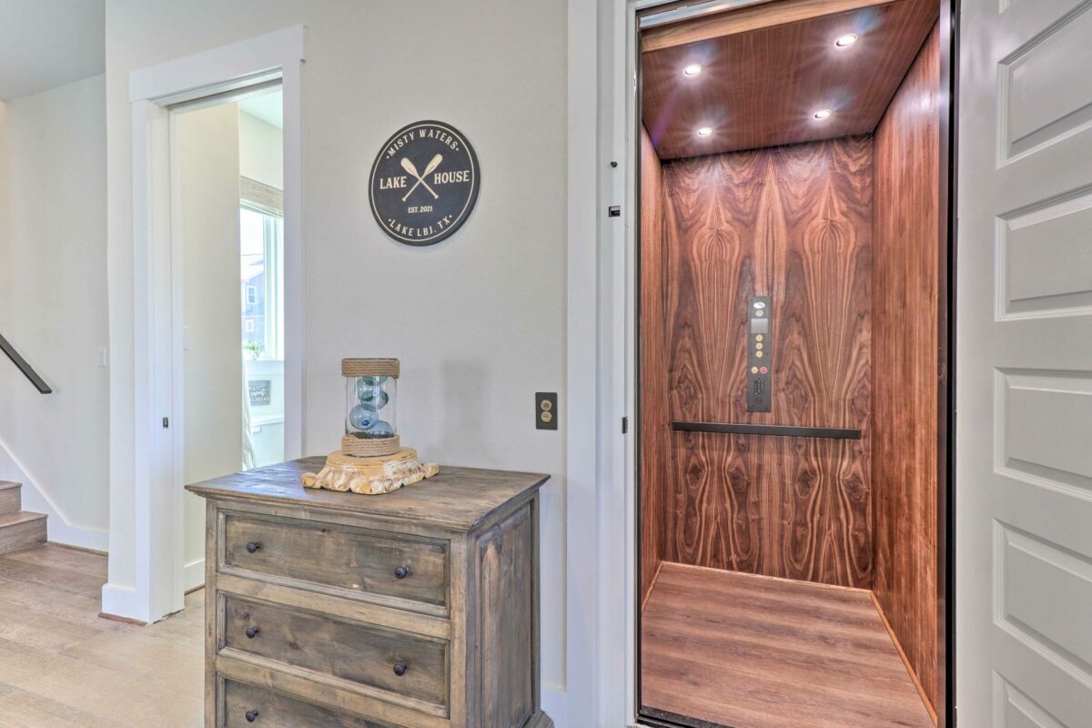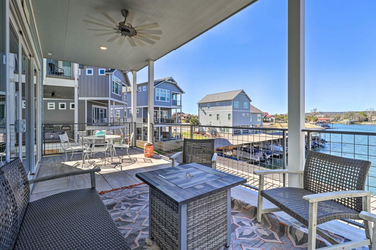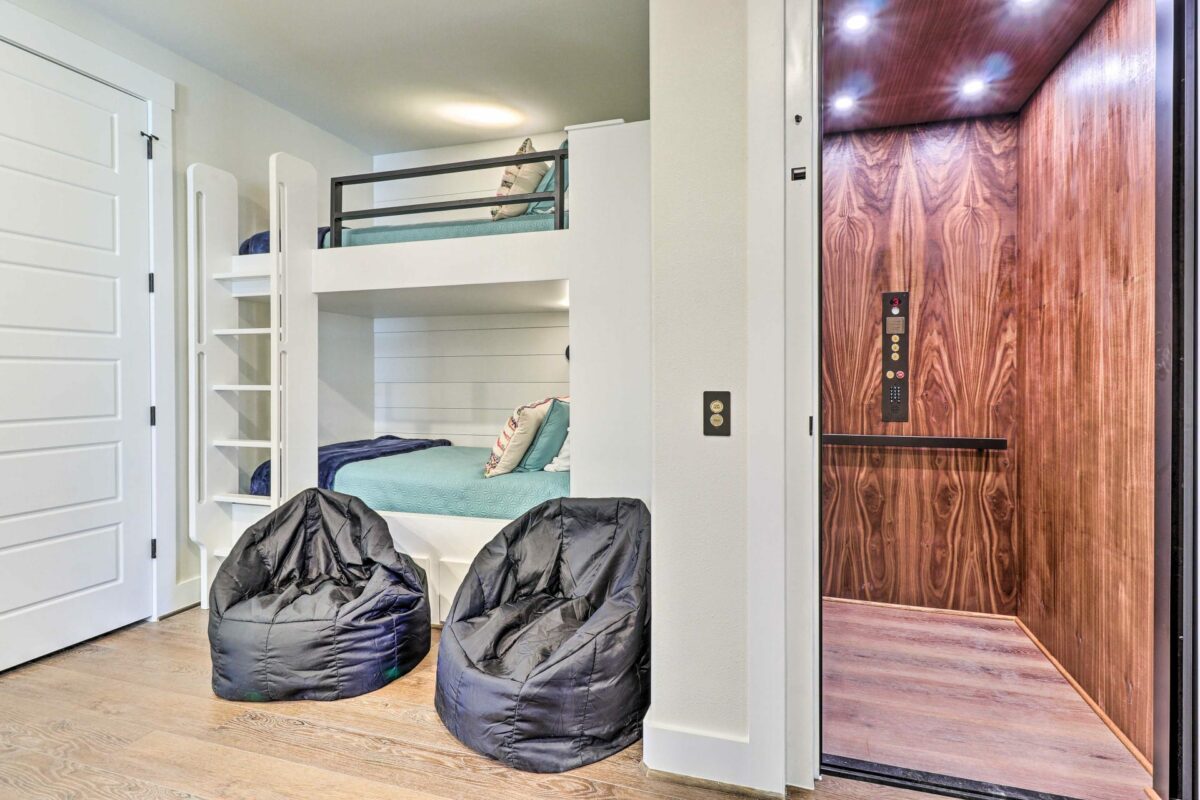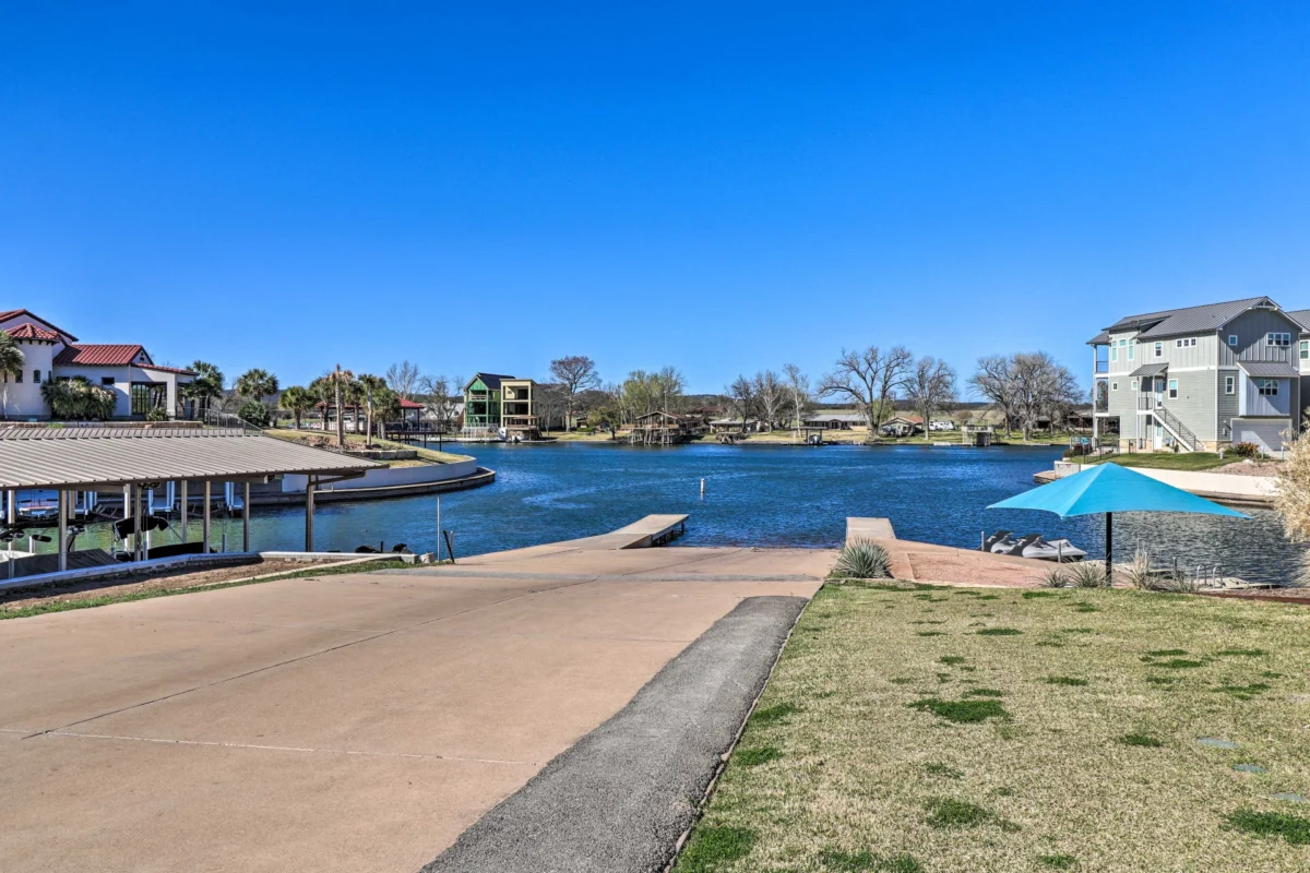 With waterfront views and easy access to the Colorado River, this vacation rental in Kingsland, TX, is the perfect setting for your next retreat. Not only will you have access to the 3-bedroom, 5-bath home’s top-notch amenities — including a 3-story elevator, a private pool, a community pool, and an outdoor living space on each floor — but you’ll also be near several of the area’s greatest attractions. Pack your clubs for a tee time at Legends Golf Course, or explore Texas’ rich wine country.