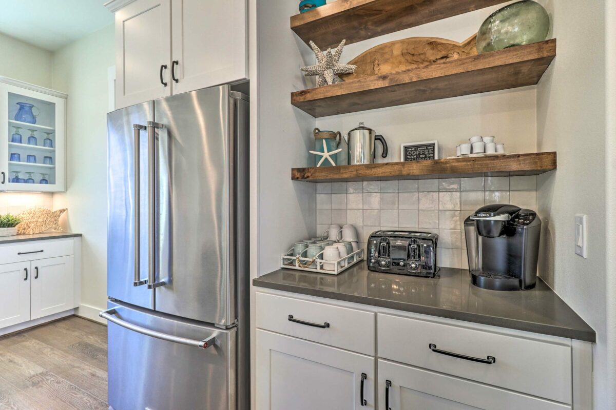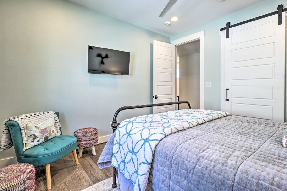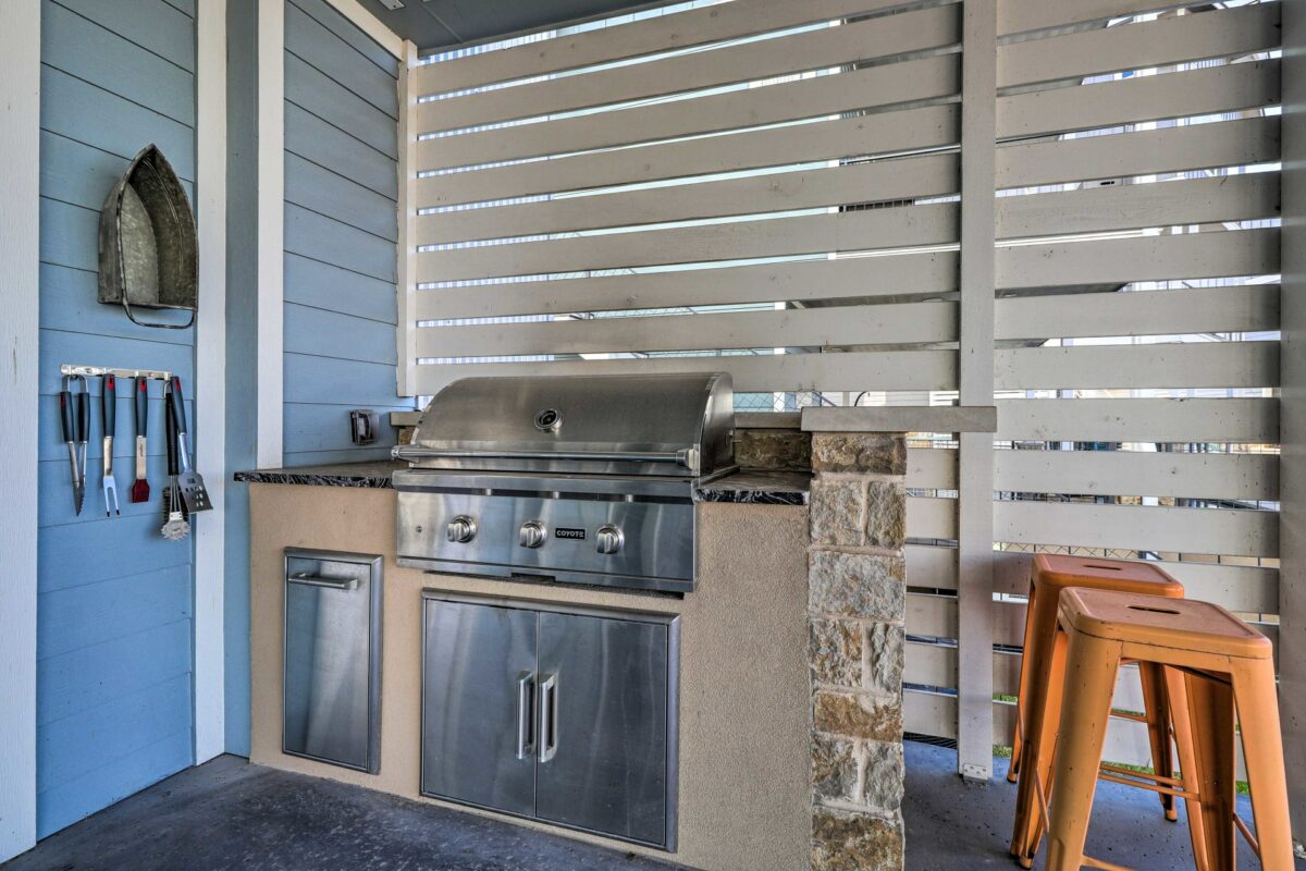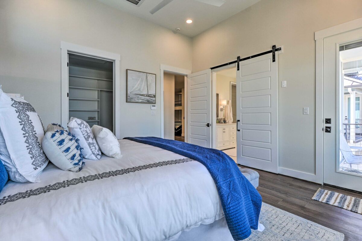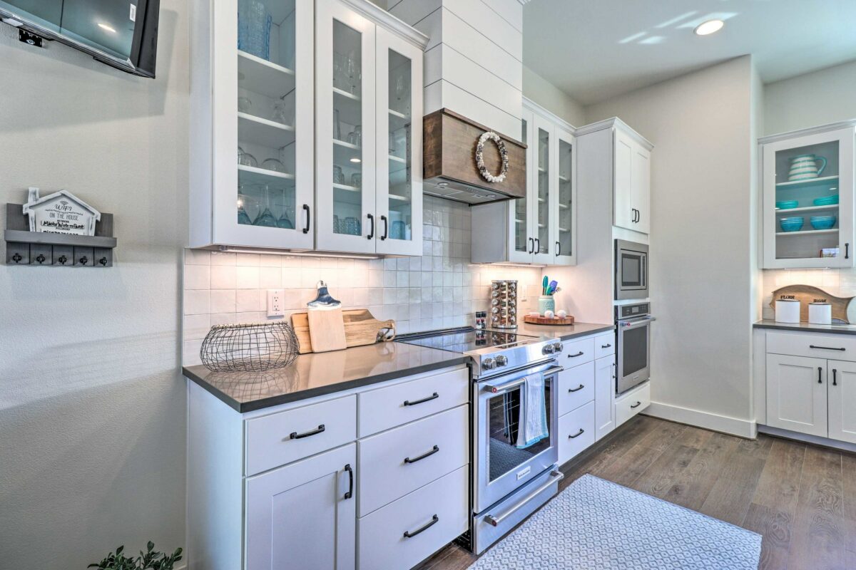 With waterfront views and easy access to the Colorado River, this vacation rental in Kingsland, TX, is the perfect setting for your next retreat. Not only will you have access to the 3-bedroom, 5-bath home’s top-notch amenities — including a 3-story elevator, a private pool, a community pool, and an outdoor living space on each floor — but you’ll also be near several of the area’s greatest attractions. Pack your clubs for a tee time at Legends Golf Course, or explore Texas’ rich wine country.