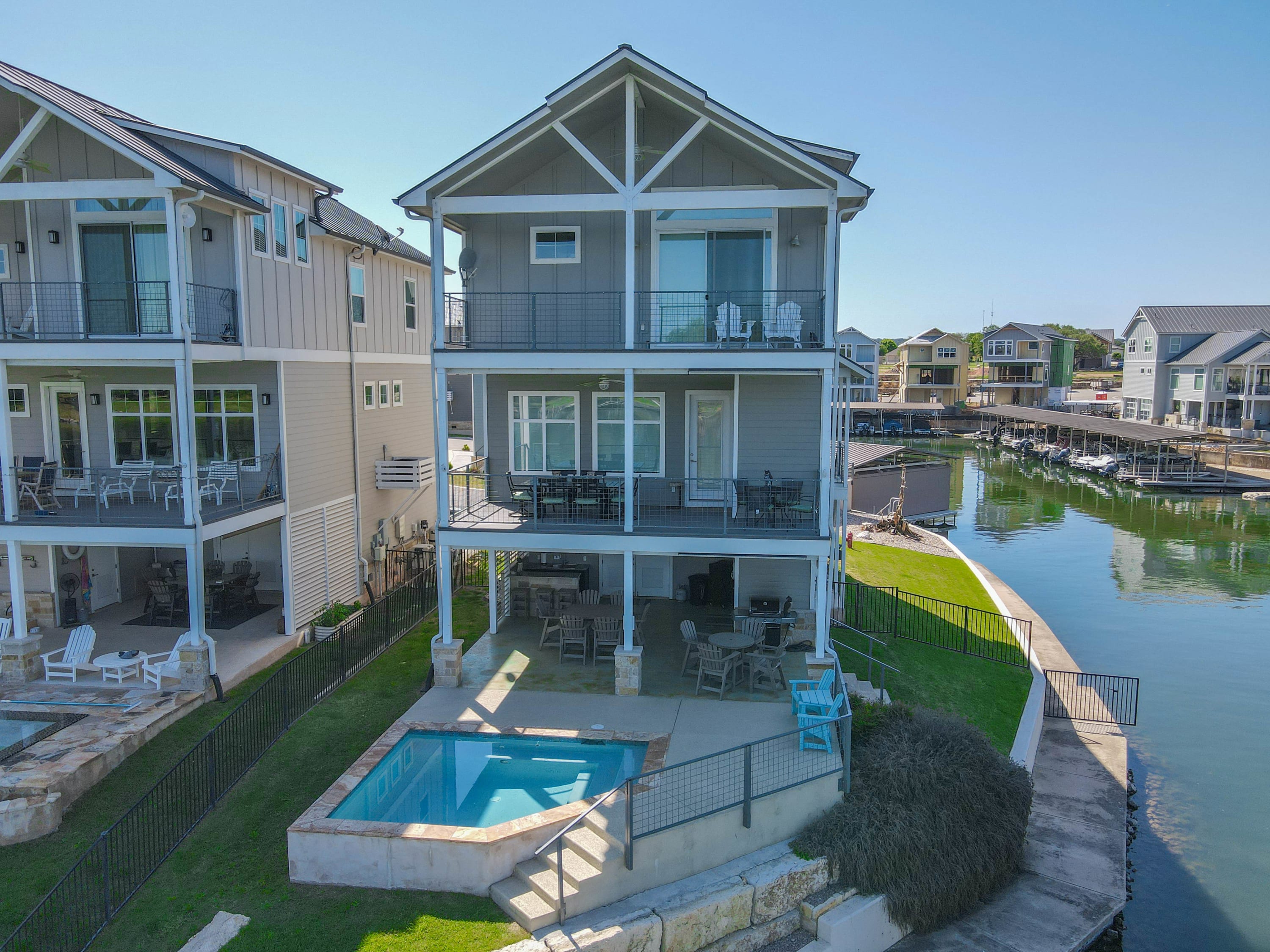 Come & stay at Paradise Point and take in the gorgeous views of the Colorado upper arm of Lake LBJ! This home is located in the gated community, Clearwater Harbor and sits on the corner so provides views of the water from every angle of the home. A private pool, that can be heated, a dedicated outdoor entertainment level equipped with outdoor kitchen. This home also has a ping pong table, water toys, and complimentary bikes! Come explore here today!