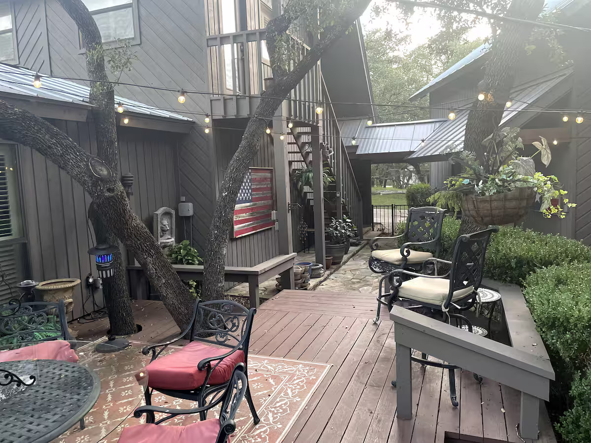 The property is located in a gated airport community in Spicewood along the winding Colorado River. Guests have access to the nearby Community Center pool, pavilion, and tennis/pickleball courts. Great proximity to areas attractions like Krause Springs, wineries, breweries, shopping, dining, and hiking.