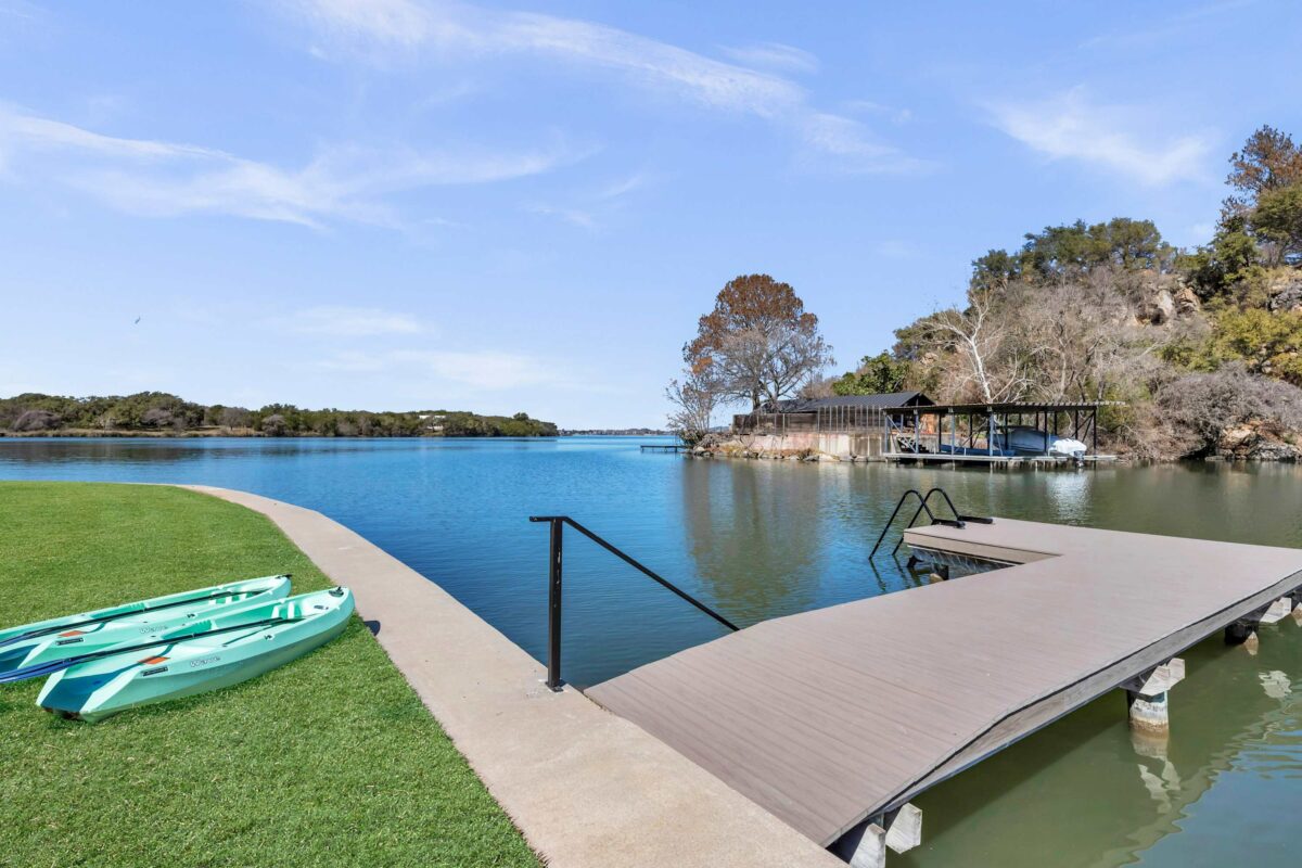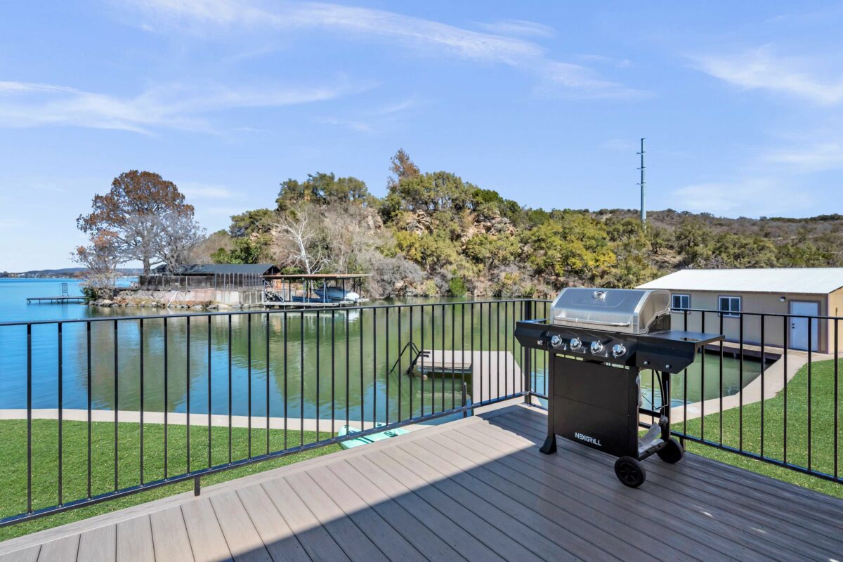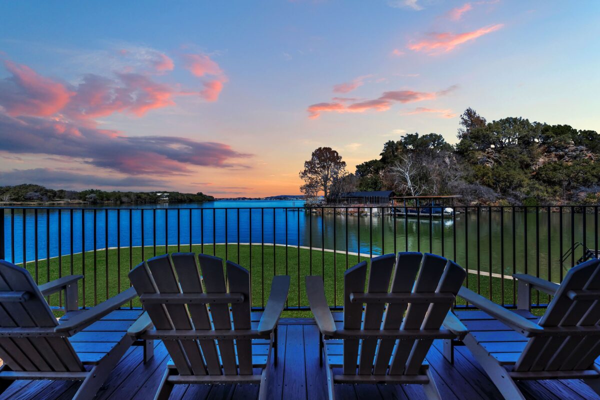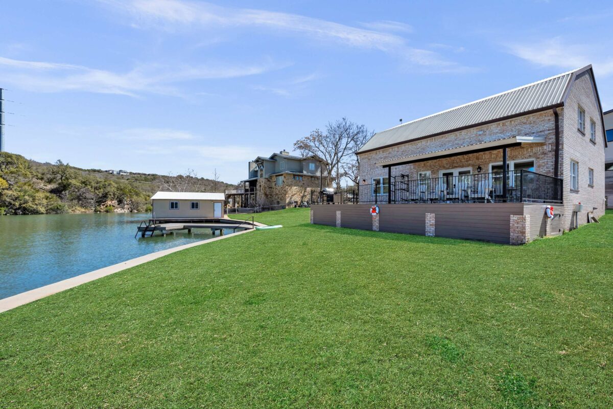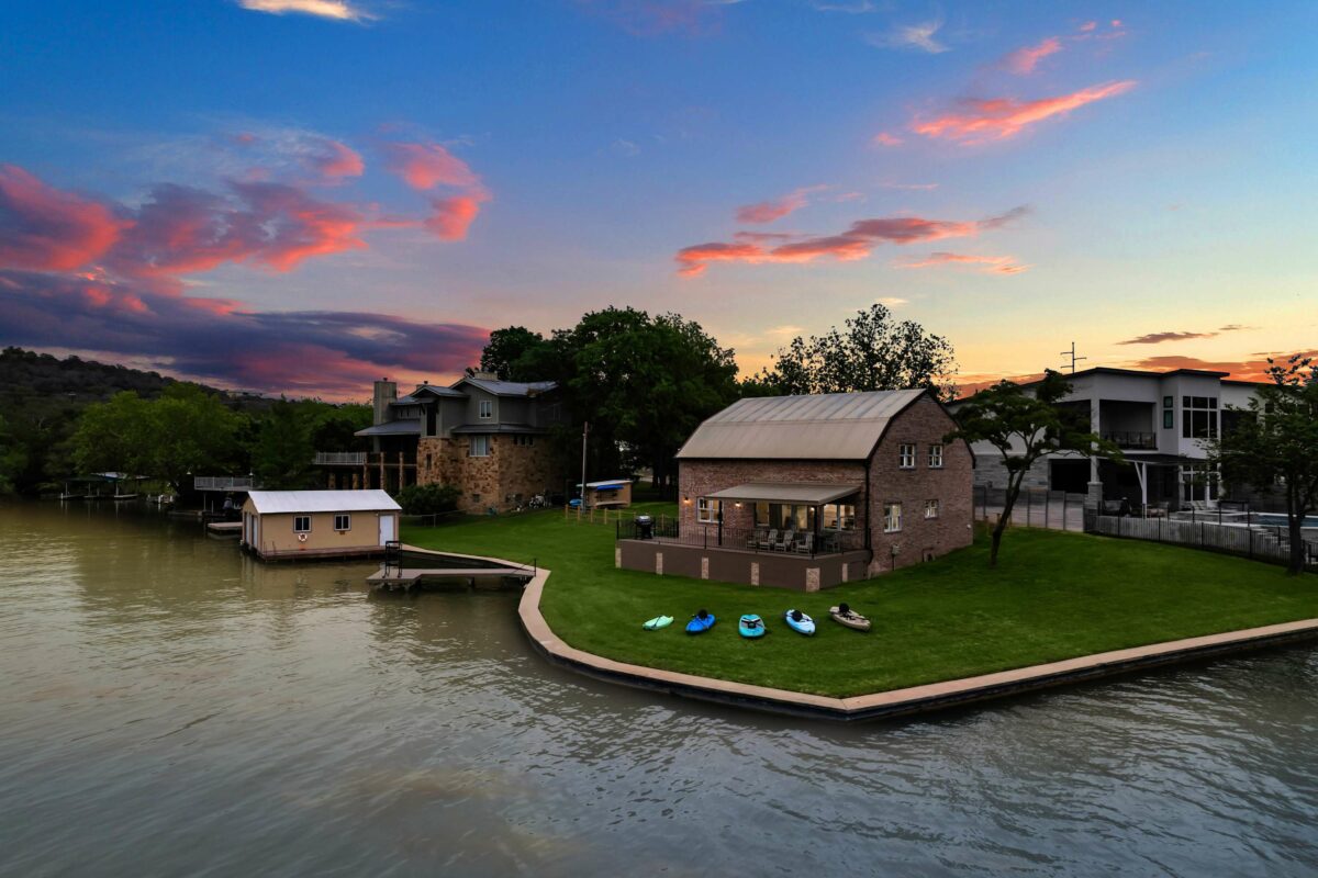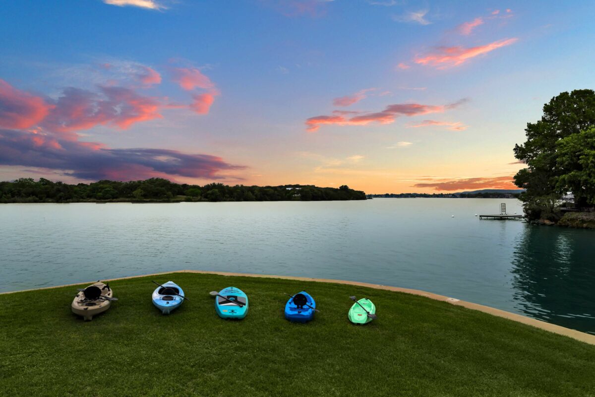 Sunset Point on Lake LBJ is stunning 4 bedroom/5 bathroom waterfront home on Lake LBJ with room for up to 22 guests. The property has a private guesthouse and its own private boat slip. Enjoy breathtaking views and sunsets from this expansive backyard. Guests have access to tons of water toys — the whole family will have fun on the lake!