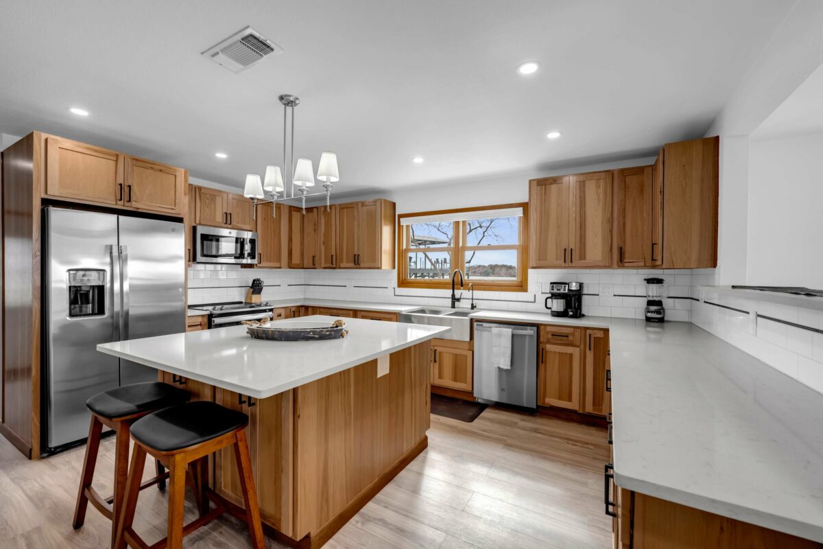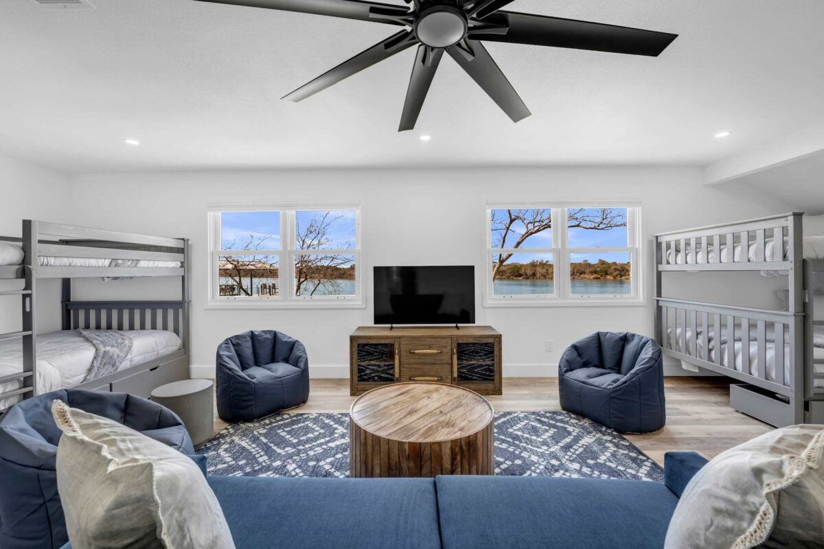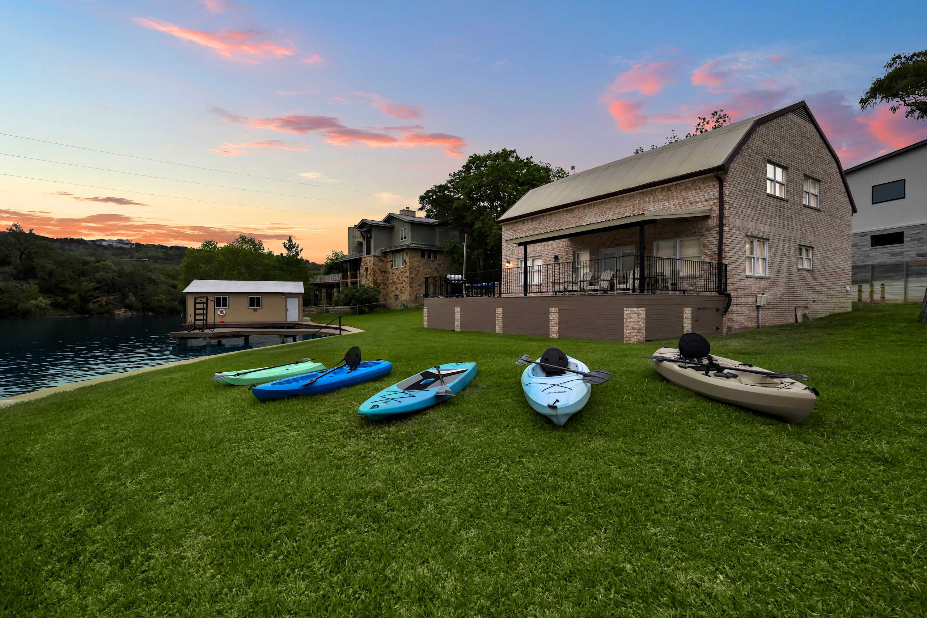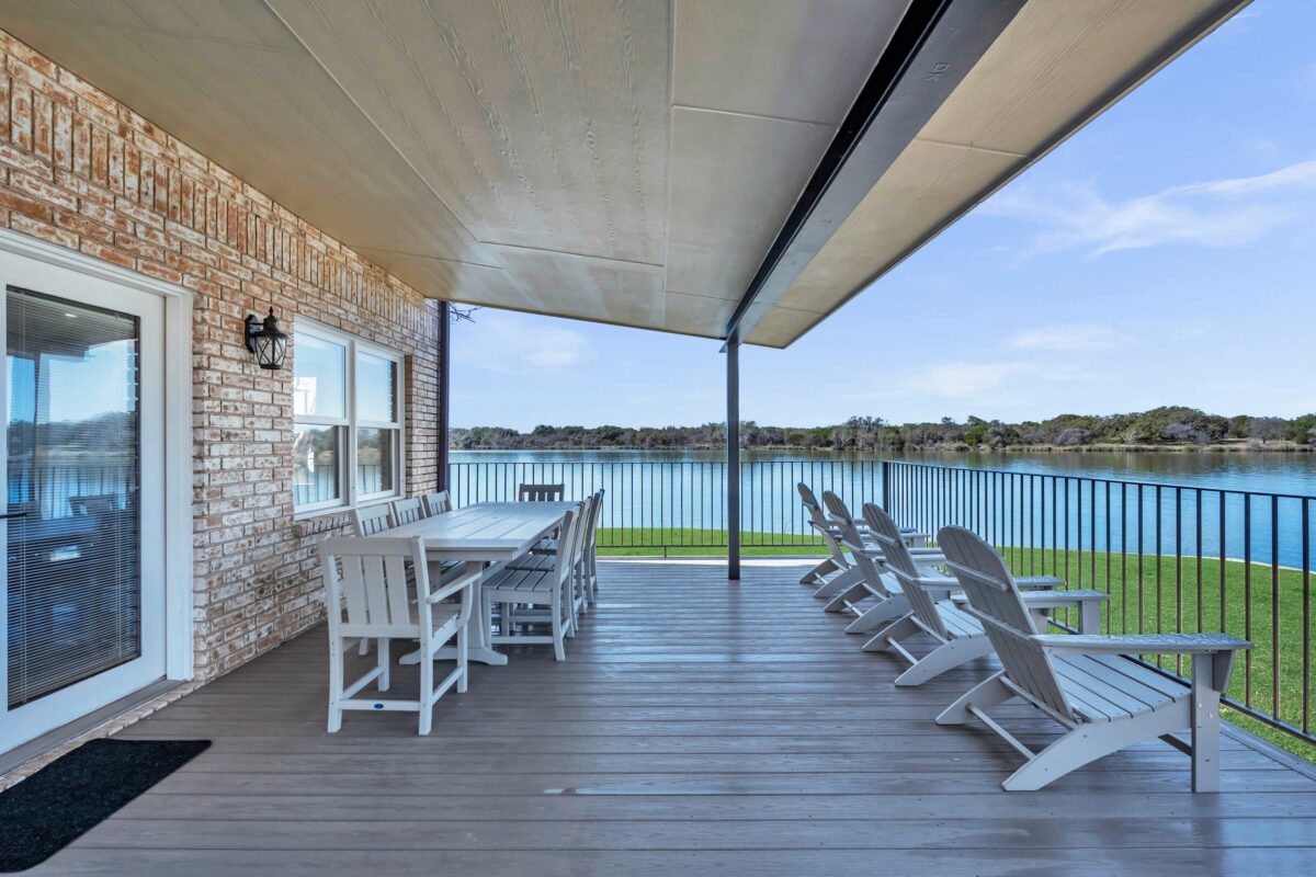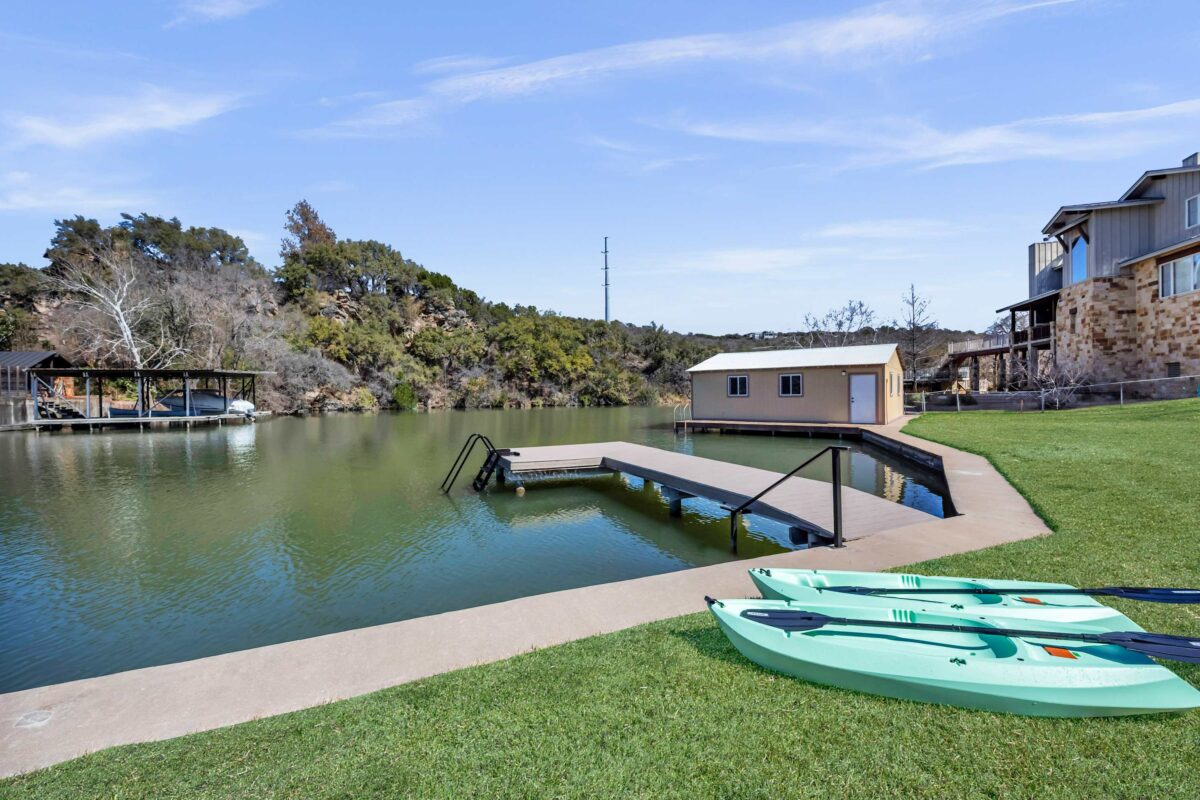 Sunset Point on Lake LBJ is stunning 4 bedroom/5 bathroom waterfront home on Lake LBJ with room for up to 22 guests. The property has a private guesthouse and its own private boat slip. Enjoy breathtaking views and sunsets from this expansive backyard. Guests have access to tons of water toys — the whole family will have fun on the lake!