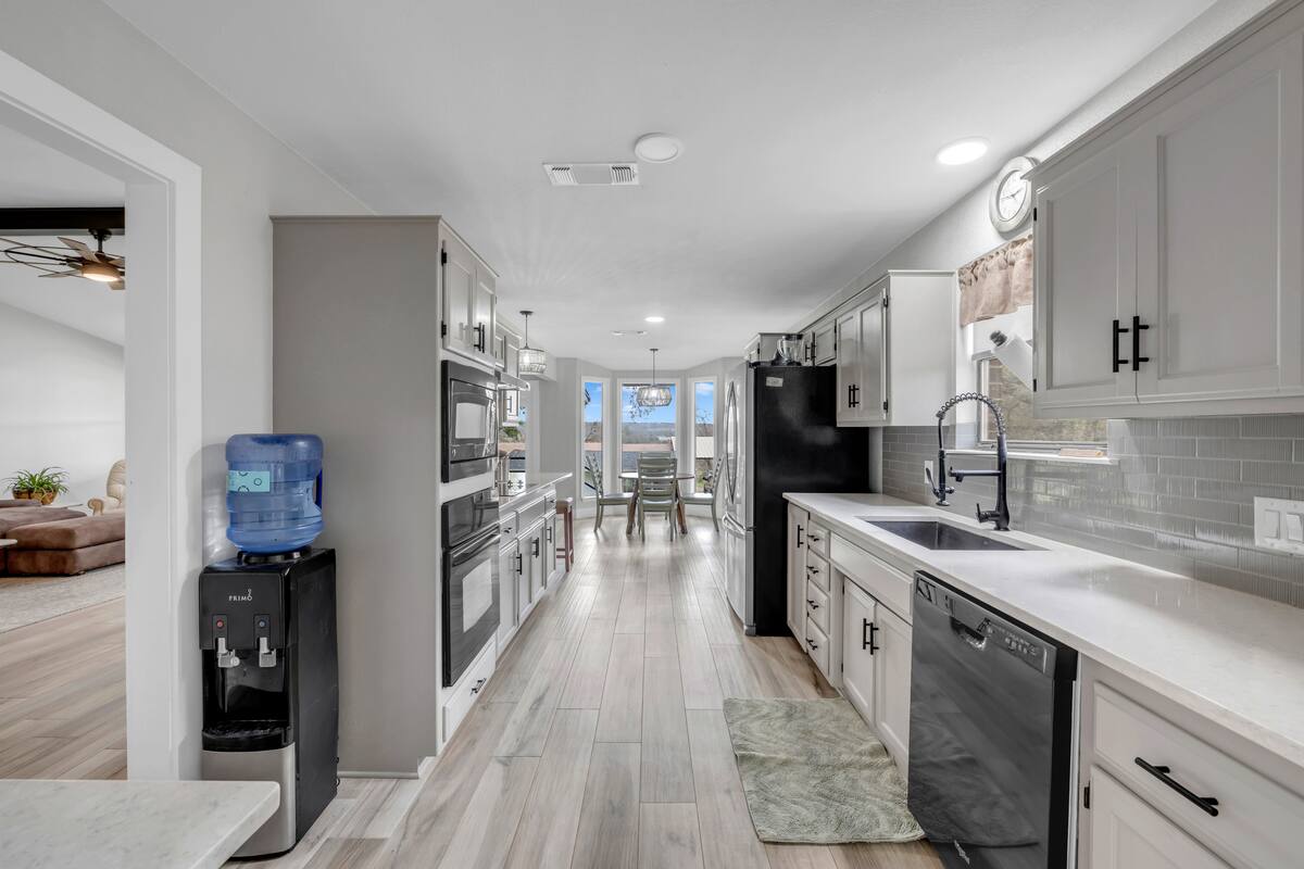 There are two private lake parks within walking distance, with access for a kayak or paddleboard. Enjoy the sunrise and sunset from the porch with a BBQ pit for delicious meals. You’ll also find yard games like washers and a backyard swing for cherished memories with loved ones.